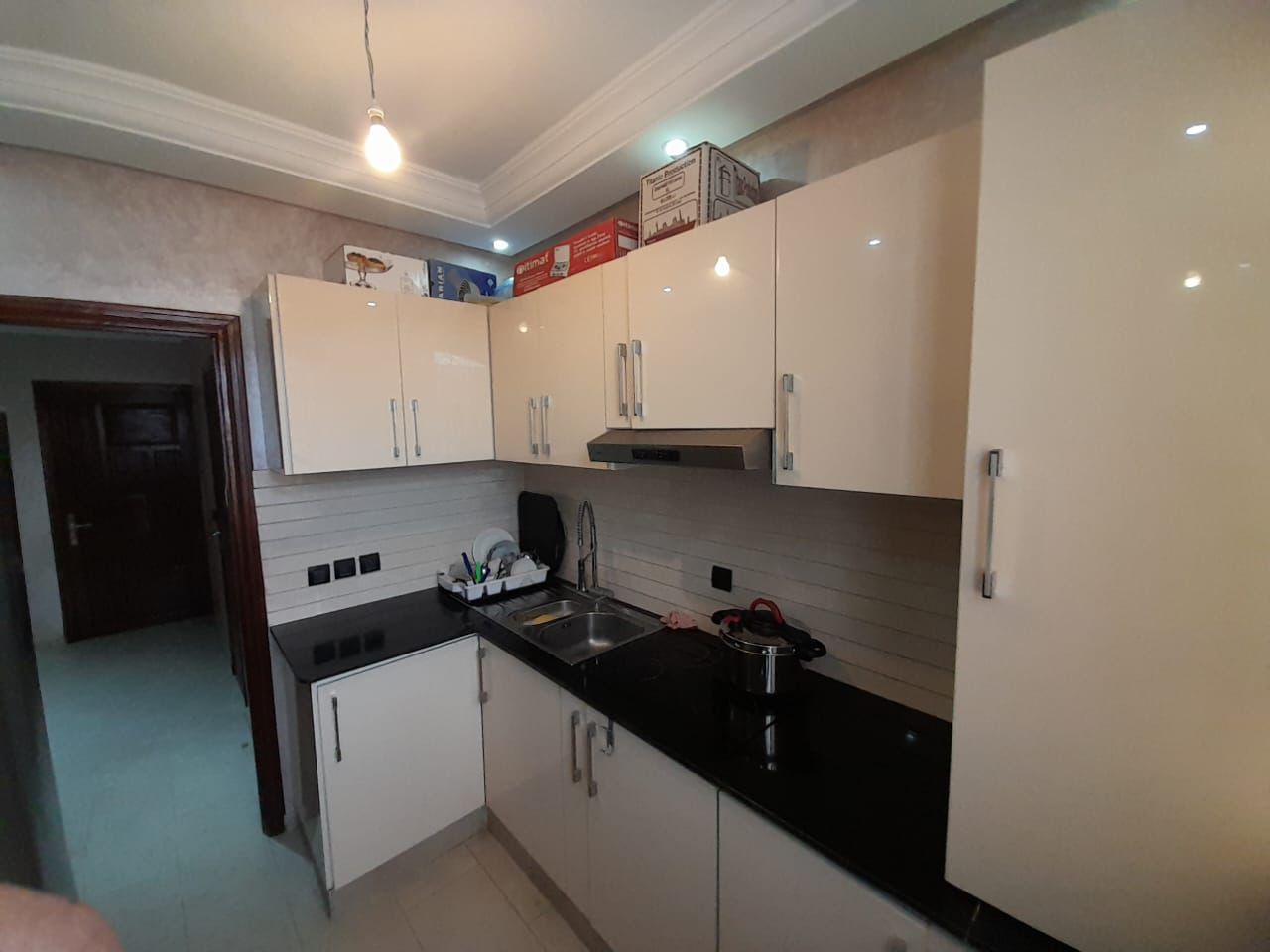 Maison de 90 m² située à Tamansourt, Marrakech, très bien finie avec des matériaux de haute qualité, notamment du marbre et revêtement importés, ainsi que des portes en bois massif de qualité supérieure.
