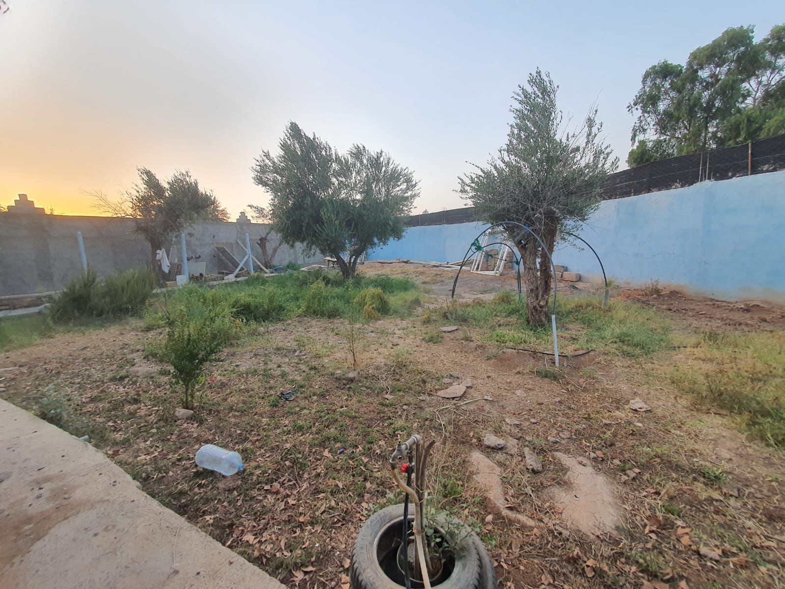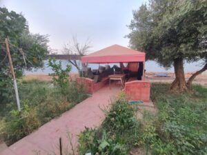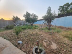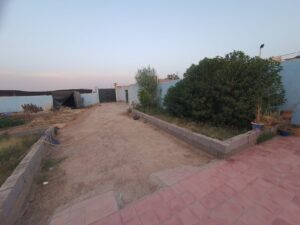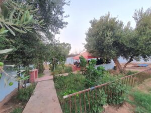 2) Une petite maison traditionnelle/ populaire pour le gardiennage avec sa propre porte d'entrée séparée. Elle est constituée de 3 pièces, 1 cuisine, 1 WC turc, 1 petit hamam beldi externe chauffant au bois, une cour bien spacieuse.Melkiya avec possibilite de la titrer.