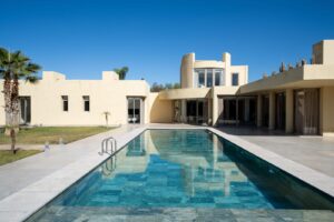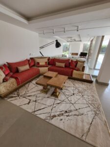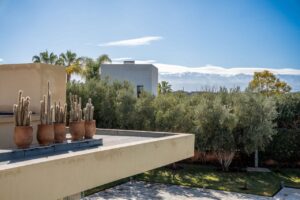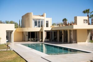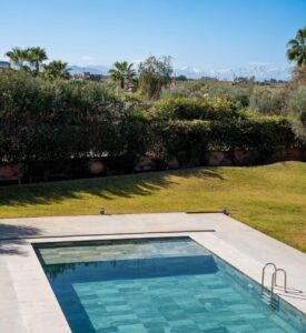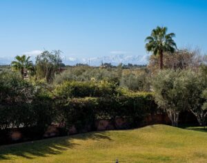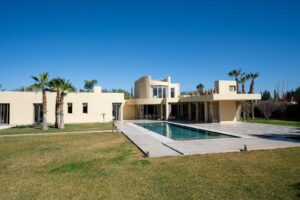 Villa d’architecte au design atypique, située dans un domaine sécurisé, très agréable, calme et recherché, au km 9 sur la route de l’Ourika.