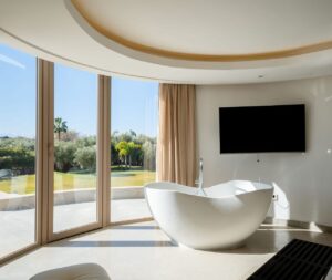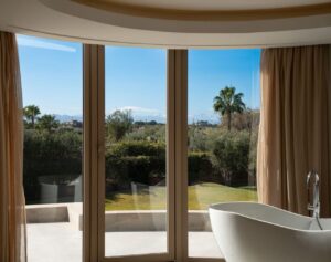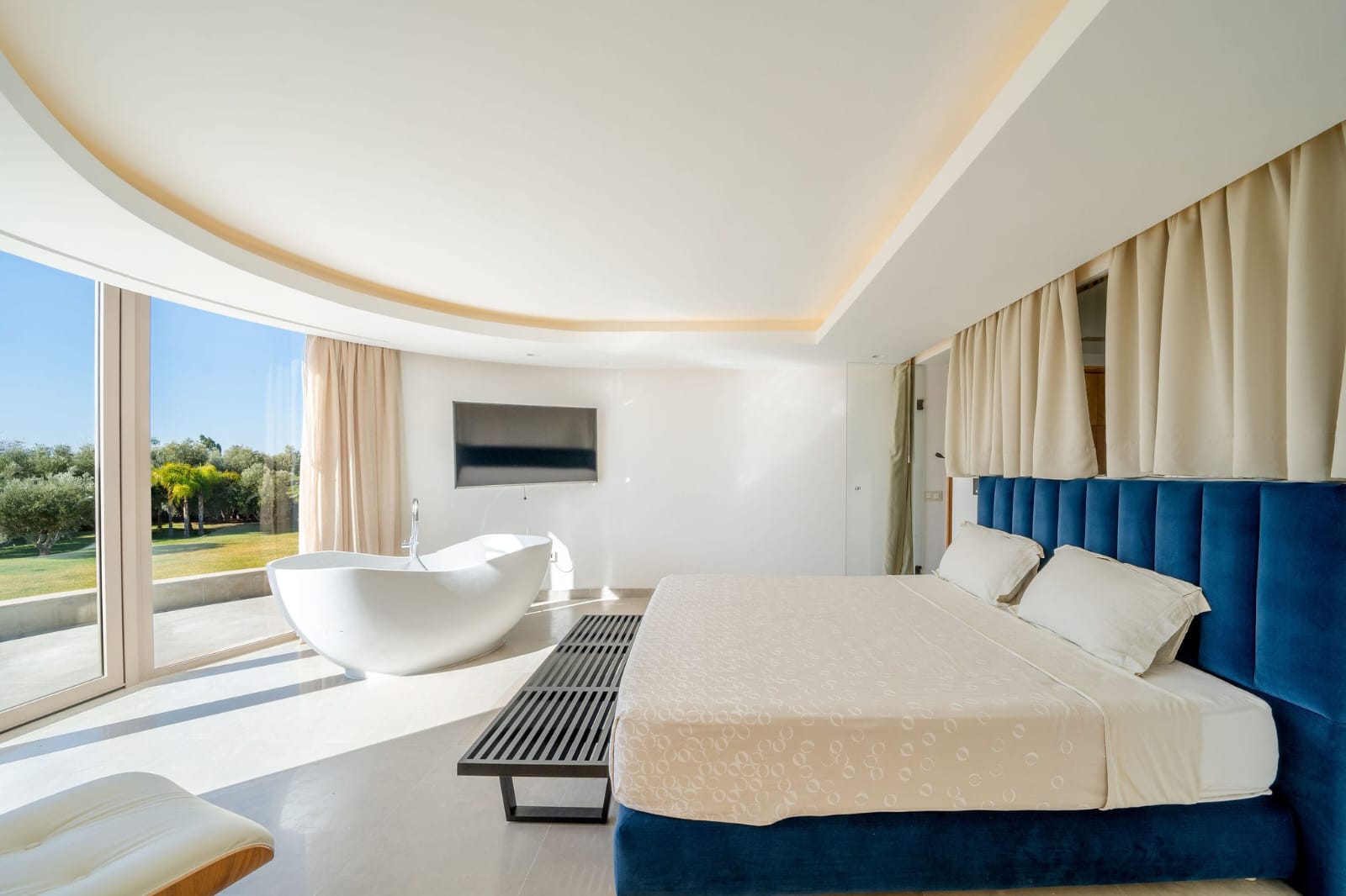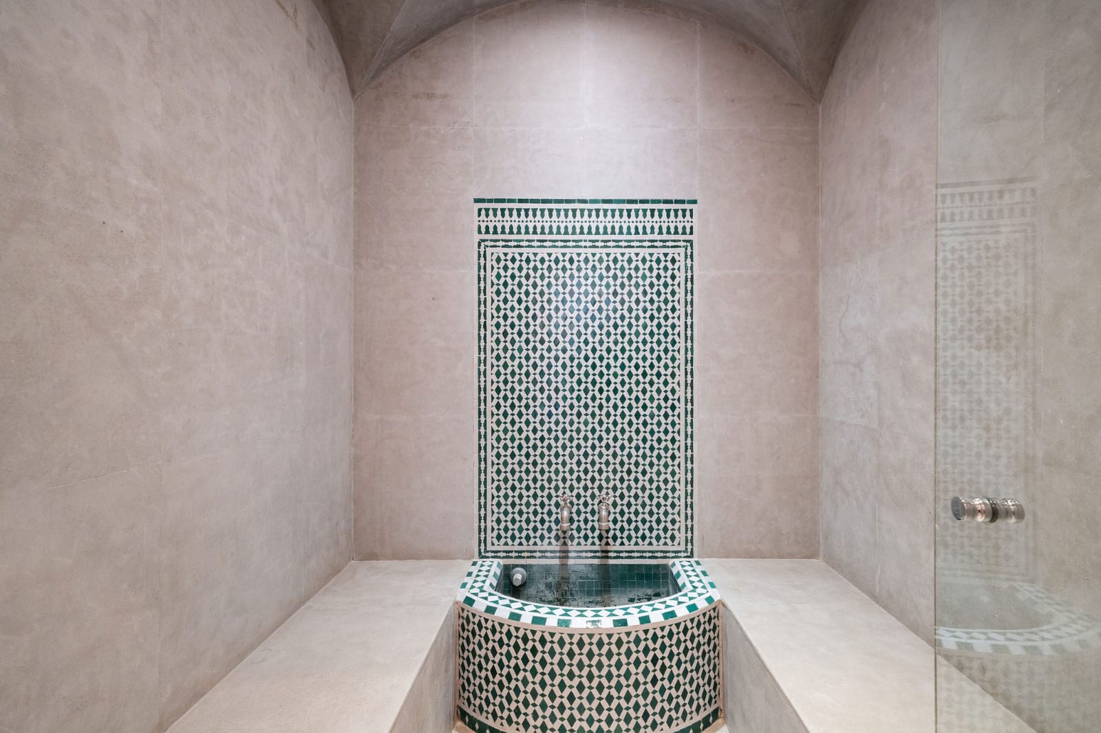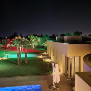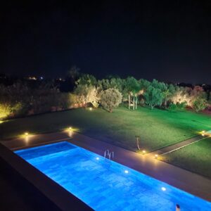 Quatre suites donnent sur la piscine, le jardin, plusieurs points d’eau, et des toilettes invités.À l’étage, vous découvrirez une suite parentale avec dressing, salle de bain équipée d’une douche à l’italienne, d’une baignoire indépendante, et accès à une terrasse offrant une vue dégagée sur l’Atlas.